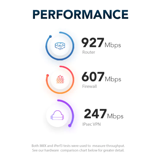 Not suitable for applications with more than 500Mbps throughput or more than 100Mbps IPSec VPN